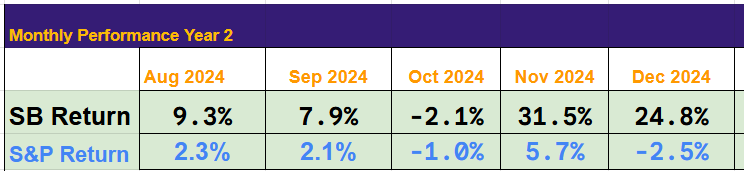 I will make the December wrap-up video in the coming days; it was another excellent month. Returns are shown below.