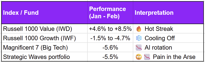 The portfolio has continued to pullback, it is now showing a loss of 5.3% in February after an almost flat January a worry in some respects, but not really of concern, as you know the project is now more than halfway through it has delivered a total return of 500% but in Q1 the average monthly return has been negative. (Figures up to end Dec 2025)